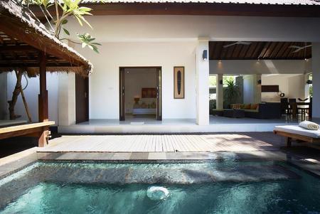 2 Bedroom Villa Alamanda: Each bedroom has an en-suite with indoor/outdoor Balinese bathroom with marble vanity and freshwater shower. The fully tiled living and dining areas have all modern facilities. Relax in the traditional wooden Bale and on the deck surrounding the 4 x 2 metre freshwater pool. Bedding is 2 Double Beds. Maximum room capacity is 5 Adults & Children.