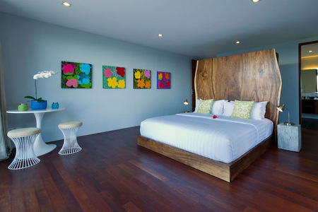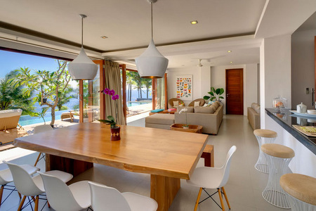With access to its own private beach, Malimbu is set high above the sea offering spectacular views extending across the ocean all the way to the breathtaking peak of Bali’s mystical Mount Agung. Designed for total rest and relaxation, this stylish, contemporary and ultra chic villa offers accommodation for up to 8 adults and two children across four bedrooms, plus a TV room that can convert into a bunkroom for two kids. A stunning 18-metre infinity pool fronts the contemporary two-story villa, while crisp clean lines of white and grey exteriors create a light and airy ambiance, Inside, vibrant artwork and colourful fabrics contrast nicely against the neutral furnishings evoking a unique sense of style.