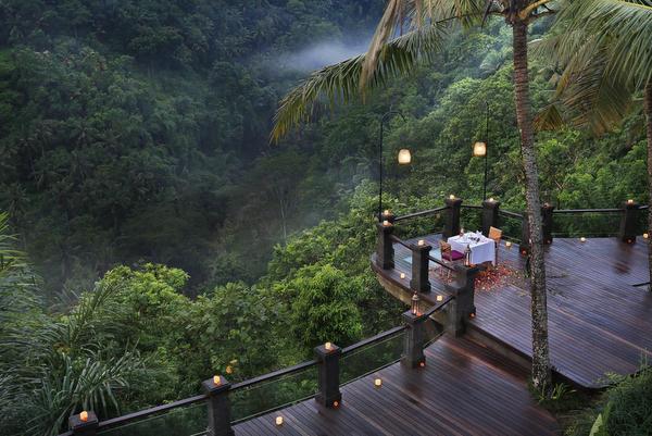 At the end of the path lies Lembah Ayung Restaurant, an open-sided joglo supported by intricately carved columns. This antique pavilion is the focal point of Pramana Watu Kurung and provides a place for guests to gather over good food and conversation. It is strategically positioned to capture the tropical beauty of the Ayung River Valley.