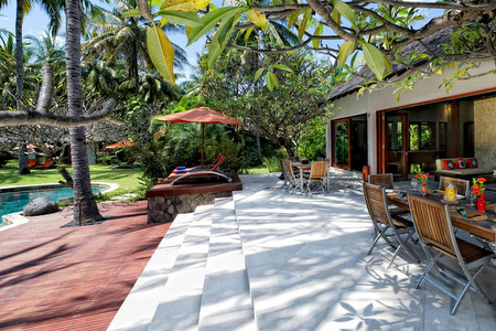 Anandita's four bedrooms are large and airy, opening out to the vast and expansive garden. Furthermore, they are well spaced out around the main pavilion to ensure that everyone gets optimum privacy. The villa's living areas, both indoors and out, offer guests plenty of space to be alone or together and forget about the world; from the formal dining room, to the beachside bale relaxation pavilion, to the onsite spa.