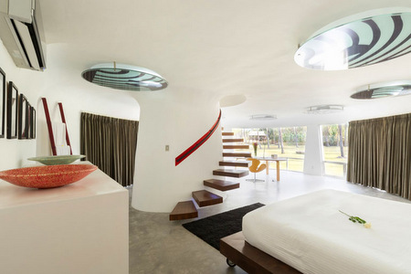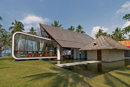 Canadian architect David Lombardi’s concept of ‘Function over Form’ leaves Villa Sapi’s guests with a sense of discovery and surprise at every turn, from the traditionally styled, grass-roofed building that houses the main kitchen to a futuristic home theatre.