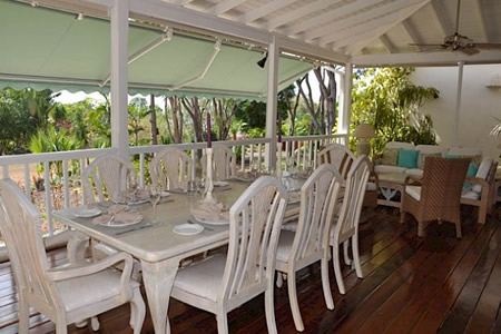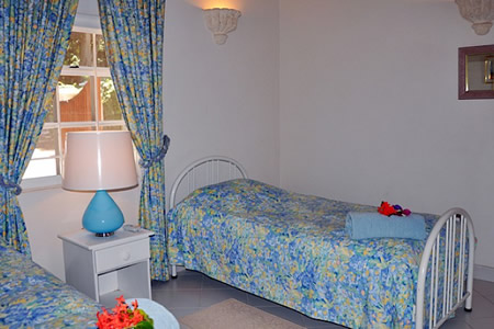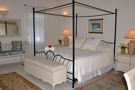 This fashionably decorated villa comprises four double bedrooms. There are two bedrooms on the lower level which share a bathroom, a master bedroom upstairs with en suite bathroom and the extra bedroom is in the attached self contained guest cottage. the villa is fully air conditioned throughout.