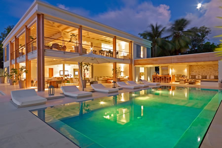 This exclusive beachfront vacation villa is set at the end of a private drive, offering complete tranquility and privacy all within easy reach of the West Coast's many five star restaurants, chic luxury boutiques, trendy bars and nightclubs and the many world class golf courses on this coast.