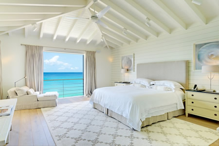 The master suite's private balcony offers panoramic views of the Caribbean Sea.