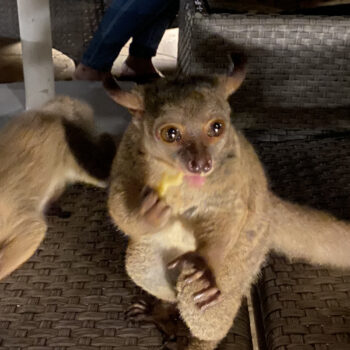 The resident bush babies are the cutest things. In the evening you sit by the pool with a plate of fruit and they come down and you can feed them.
