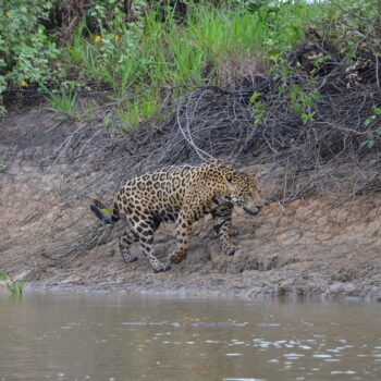 These wetlands are a very special place and a haven of natural wonder. Porto Jofre is one of the best places to witness this, and the best chance to see the jaguars. We were out on our boat with our guide and captain and we stumbled into the most famous jaguar of all, Juru – a name given by the locals. He is known to be a bit vain, and to like the attention. He was strutting around, in and out of the river, bit of a swim here and there.