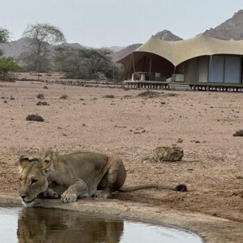 Namibia is home to breathtaking landscapes and some of the most remote and stunning lodges, such as Wilderness Hoanib Skeleton Coast Camp. This lodge exemplifies low-impact tourism, operating entirely off-grid with solar power and supporting desert-adapted wildlife research. Here, conservation is at the heart of every experience, from tracking desert lions to learning about how wildlife thrives in extreme environments.