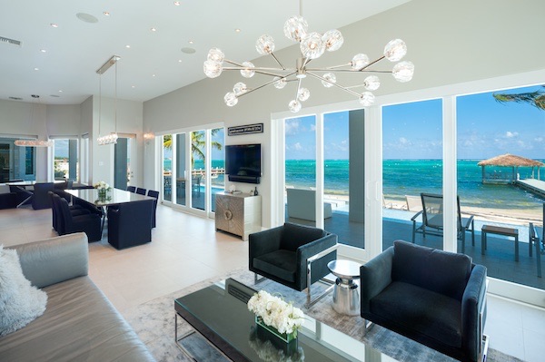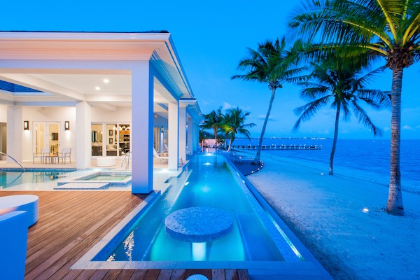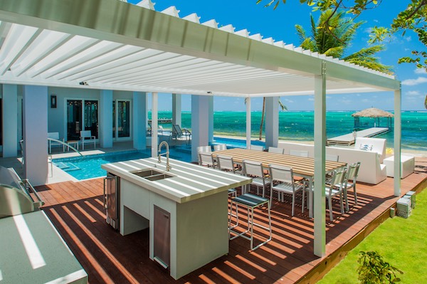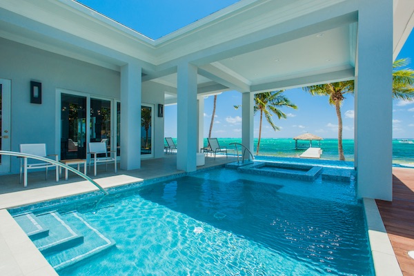 Luxurious villa in South Sound with direct beach access, heated pool, indoor and outdoor kitchens, and a wide range of amenities