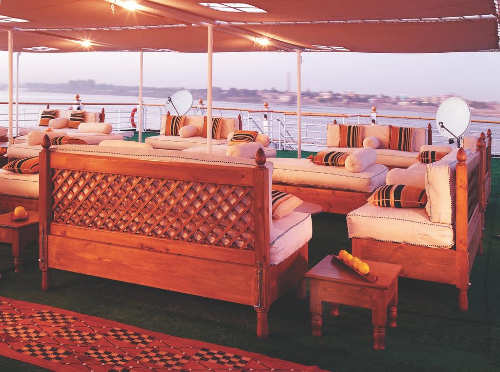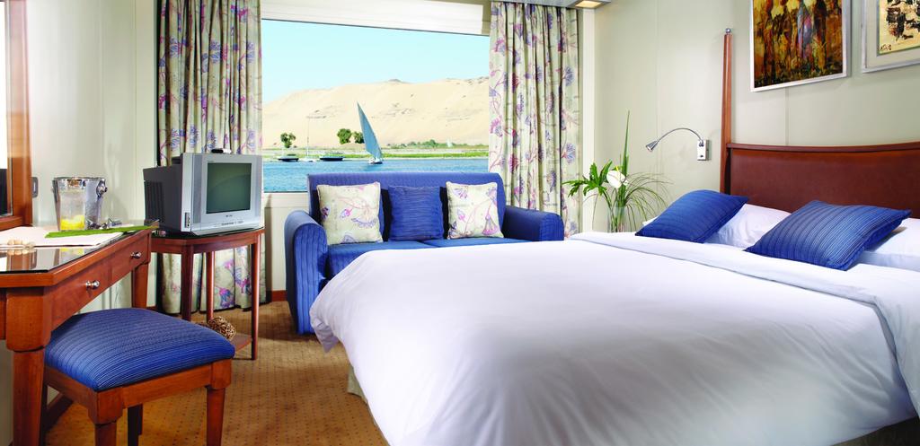 Luxurious Nile cruise that offers unmatched luxury, tastefully decorated and spacious cabins and very nice public areas. Each cabin offers a lovely private balcony to enjoy the beauty of the Nile in privacy.
