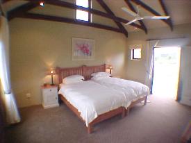 Located at a fresh water dam in the valley, this country/rustic style luxuary house has five bedrooms. The main bedroom has a King bed, two bedrooms have Queen beds and two bedrooms have twin beds. All bedrooms are en-suite.