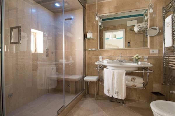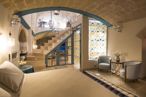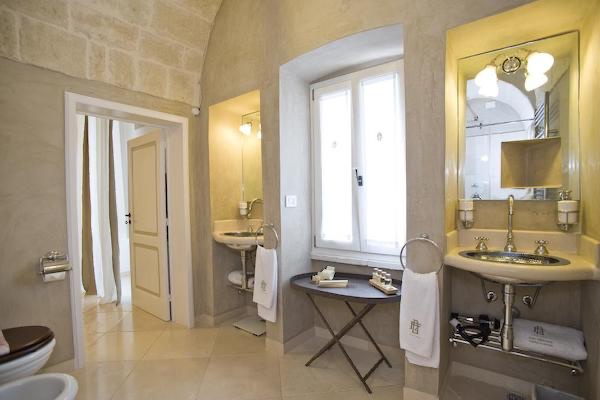There are 10 rooms in total; two suites are located in the nearby Town House, both of which have independent access and full use of the services and facilities of the main building, and two suites and one room are located in the Guesthouse, again all of which have private entrances and full use of the main building. The main hotel building houses Deluxe rooms, Superior rooms and the Don Ferrante Suite. All rooms have a really romantic feel and decorated with neutral tones, soft colour schemes, carved wooden furniture and vaulted stone ceilings. Room sizes vary and some have sea views, whilst others overlook the town streets below. All have en-suite bathrooms whilst the suites offer more space with separate living rooms. Some of the accommodation has private balconies whilst the special Suite Madia in the Town House has a beautiful roof terrace overlooking the town’s rooftops.