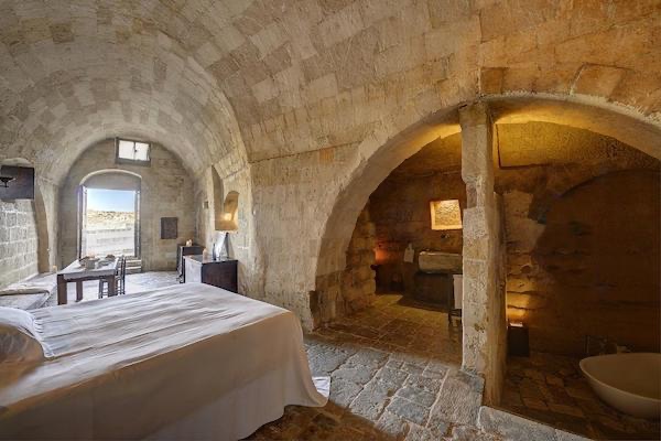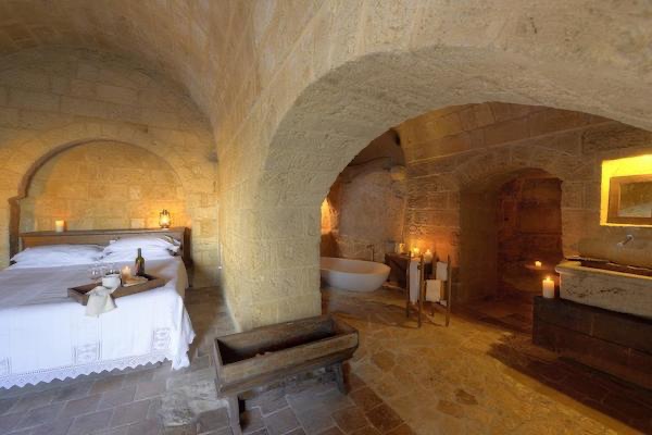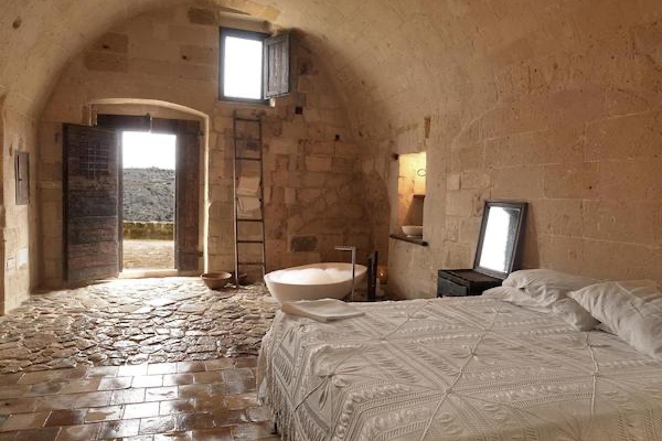 A luxury concept-hotel, located in a historic Apennine village in Matera’s UNESCO Sassi area. This amazing cave dwelling blends rustic, medieval charm with 5-star comfort. Prepare for an atmospheric stay in a candlelit grotto, with unique views over the Murgia park…