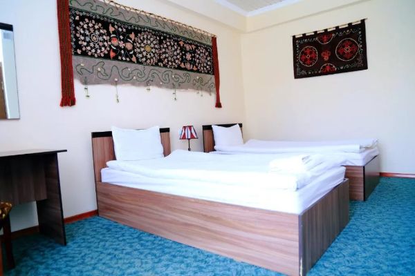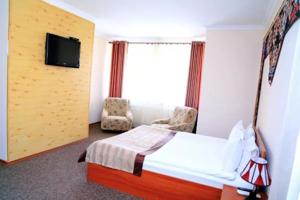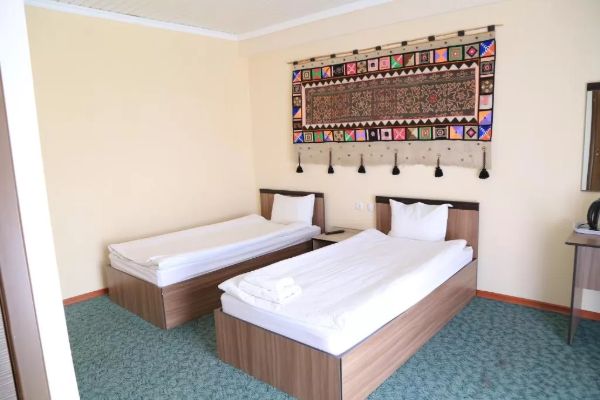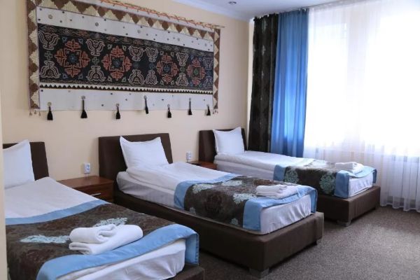 The hotel is named after the Tian Shan mountains’ second highest peak. It’s modern, with lots of space and flashes of vibrant greenery. Intricate Kyrgyz tapestries hang from fresh white walls, giving the décor an authentic touch. At breakfast, you’ll have a great choice of continental and buffet dishes. Dinner is also served at the hotel, or you can catch a taxi into town and try out one of the local restaurants.