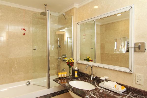 Soak any stresses away in the sauna and Hammam. The hotel’s spa and fitness centre also has a relaxing wellness area and an indoor pool for a refreshing morning swim or afternoon dip. At the all-day restaurant, chefs prepare a tantalising menu of round-the-world dishes, from fresh pastries and made-to-order eggs for breakfast to European favourites for lunch and dinner. In the evening, the lounge bar is the perfect place to relax with a drink after