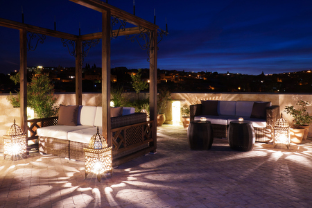 Demani: Set on the roof terrace with its own private patio and a small writing room; sunken bath with 3 foot depth; low ceilings.