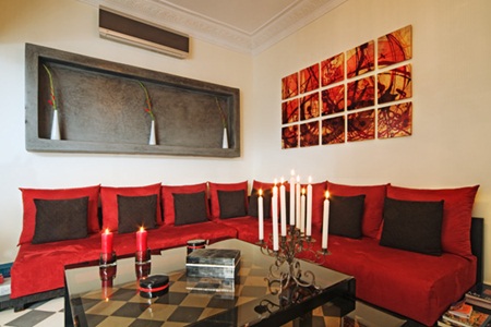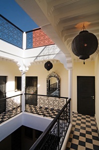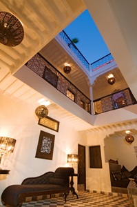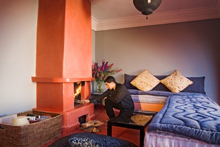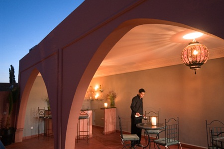 Thre are plenty of places to relax with a good book, play a game of backgammon, catch up on emails or enjoy a drink, the beautiful salon which overlooks the courtyard and stunning black tiled swimming pool, the comfortable and romantic b'hou, or the roof top salon with an open fire for chilly nights, or you can, of course, lie on a sunbed and soak up the usually reliable Morrocan sun. The large roof terrace also boasts a well stocked bar, the perfect place to watch the sun go down.