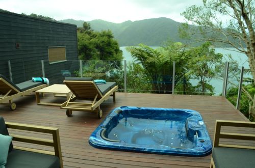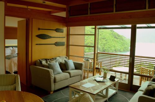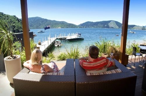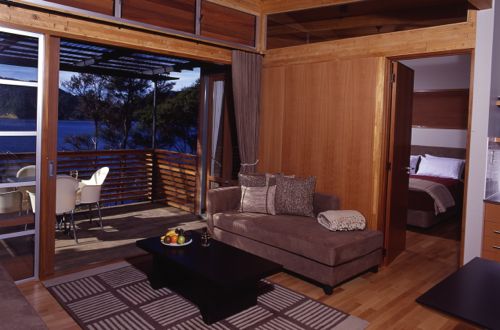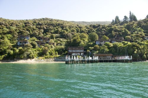 This elegant New Zealand retreat in the heart of the Marlborough Sounds, is just 30 minutes by water taxi from Picton.  Tucked away on the shores of a stunning aqua-blue bay, the contemporary apartments, peek through lush native bush surrounding this special place.