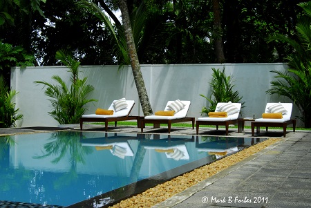 'An immaculate garden, pool and river frontage with our own jetty, kept to the highest standards day and night by Sarath and Sanath and special touches like the frangipani flowers on our pillow at night and the candlelit lanterns along the corridor outside our rooms.'