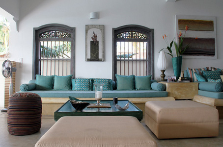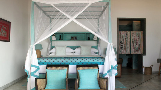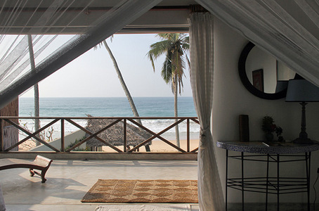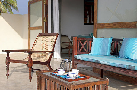 Upstairs there are two double bedrooms with en-suite shower rooms. These are air-conditioned and have wide sea-facing verandas for sun-bathing, leisurely breakfasts or simply nursing a drink and a book and staring out at the Indian Ocean. Please note the balcony has open sections around which guests will need to take care if they are travelling with young children.