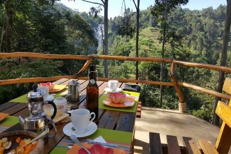 Waterfalls Homestay has three uniquely designed rooms for you to choose from. The smallest and cutest of the three is the Jungle Room, which feels like a luxurious tree house. The semi hexagonal room offers 180 degree views of the jungle and has polished floor boards, and en suite with hot and cold water and a small private veranda. The Veranda Room is a spacious double facing the waterfall with French doors opening on to a large veranda, a huge wrought iron bed and en-suite. And finally, the first floor Studio Room, with panoramic 180 degree views, boasts terracotta floors, well stocked book shelves and en-suite. It has one double and one single bed, making it an ideal room for families.