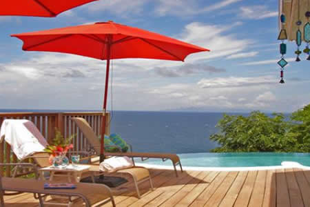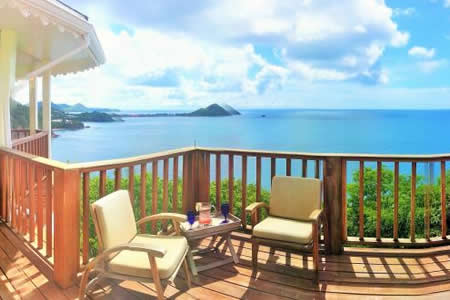 Gaze upon historical Pigeon Island to the left, Martinique to the right and out to sea directly north. The villa comprises two levels, the Master Suite located on the top floor with its own private deck, porfect for sun tanning, reading a good book or just enjoying the view. Master has a queen size bed and an ensuite bathroom.
