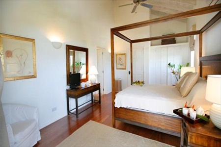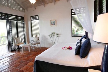Downstairs there are 3 more bedrooms, which are cooled with ceiling fans. The Atlantic and Caribbean bedrooms have a kingsize bed and ensuite shower, and the middle bedroom has two single beds and an ensuite shower.