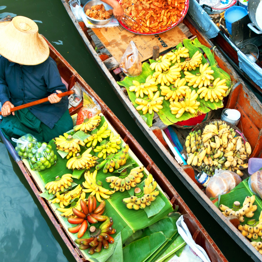 Wake up early for a day of market magic! At Maeklong Train Market, watch vendors race to pull their goods off the tracks just seconds before the train speeds through—then quickly set up again once it’s passed. Then cruise through Damnoen Saduak Floating Market, where vendors sell fresh produce right from their boats as shoppers float by buying what they like. Finish with sweet treats at a palm sugar factory and iced coffee at Lao Tuk Lak Market.