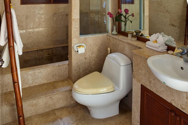 The villas are Balinese influenced, featuring a lot of natural wood, terracotta tiles and shaded and open spaces. Each villa has its own Balinese style entrance way and a separate car port entrance provides ample parking space for two large vehicles.
