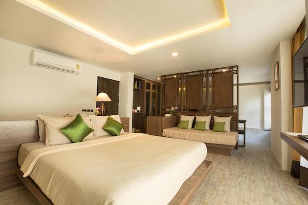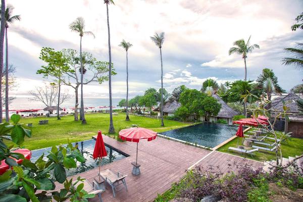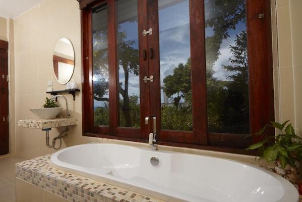 The entry-level rooms, the Veranda Villas (40sqm) are dotted along the hillside. The Thai-style villas offer balconies, air-conditioning, cable TV with a USB movie stick, refrigerator, telephone, king size bed with futon mattress and a safety deposit box.