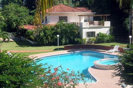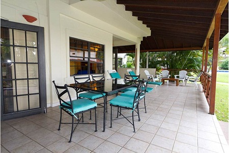Designed for open air living with shady verandahs and upper sun terraces, Mahogany Villa has a private plunge pool and shares a large 60 foot (20m) swimming pool with entertainment facilities.